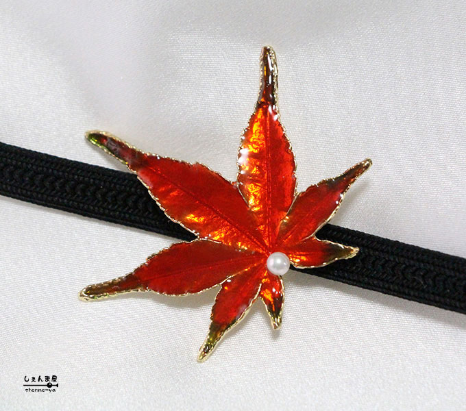 紅葉は帯留めでも取り入れやすいです。